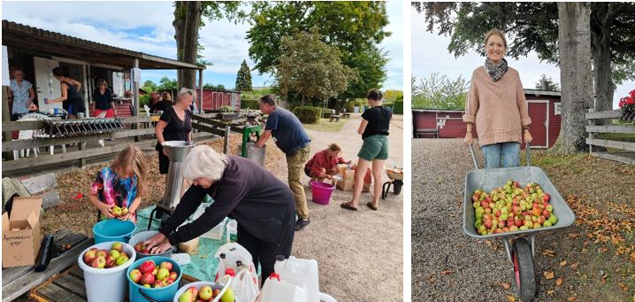 - Skörda mogna äpplen. Det går bra att använda fallfrukt, men inte frukt som börjat ruttna. Skölj rent frukten från jord, löv och döda insekter hemma, innan du tar med den till Ärtebo. På plats kan du skära bort eventuellt skadade delar.